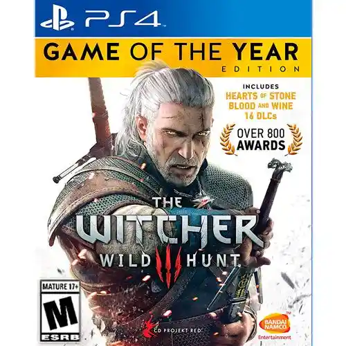 The witcher 3 game of the year ps4la edición del juego del año incluye:juega a la versión más refinada y completa del juego más premiado de 2015: the witcher 3 wild hunt. â¡ahora disponible con todas las expansiones y contenido adicional! â¡conviértete en un asesino de monstruos profesional y embarca en una aventura de proporciones épicas! tras su lanzamiento, the witcher 3 wild hunt se convirtió en un clásico instantáneo, y obtuvo más de 250 premios al juego del año. ahora puedes disfrutar de esta gran aventura de mundo abierto de más de 100 horas, junto con sus expansiones basadas en historias que valen 50 horas extra de juego. esta edición incluye todo el contenido adicional: nuevas armas, armaduras, trajes complementarios, nuevo modo de juego y misiones secundarias. juega como un asesino de monstruos altamente entrenado para contratarrastrear al niño de la profecía en un mundo abierto de fantasía moralmente ambigua