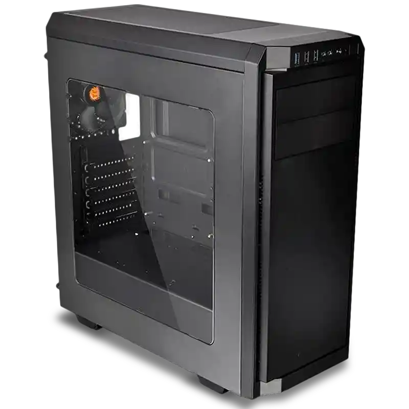 Chasis de media torre ATX con un ventilador de 120 mm preinstalado y una ventana acrílica. El V100 es compatible con el hardware de PC más reciente y todas las soluciones de GPU de alta gama, garantiza una capacidad de expansión incomparable para configuraciones de alta gama y un sistema de refrigeración líquida para satisfacer el mercado donde los usuarios han optado por un elegante chasis de PC con características avanzadas y atractivo estético.