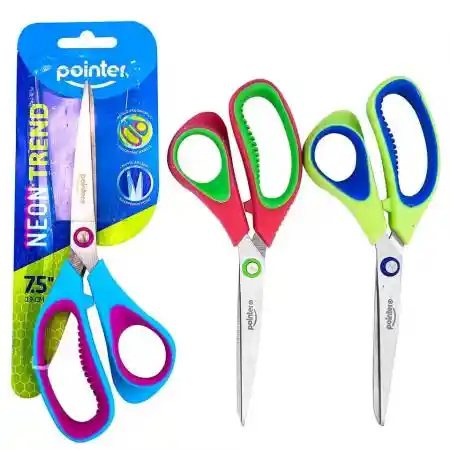 Tijera ergonómica. Marca pointer. 19cm Colores neon