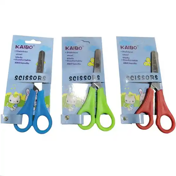 Tijeras escolares punta roma ideal para niños de 4 años en delante de acero inoxidable y con la punta sin filo para su seguridad. Descripción: . Mango liviano. . Ideal para niños de 4 años en adelante. . Para uso con mano izquierda o derecha. . Hojas de acero inoxidable. . Puntas desafiladas para seguridad. colores surtidos Medidas: 13 cm
