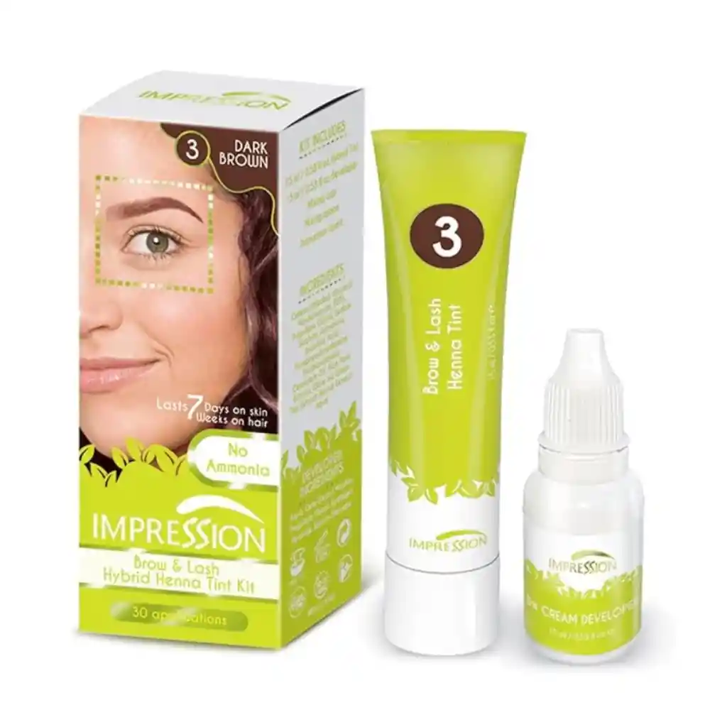 Kit Hair Colour Tintura Castaño Oscuro para Cejas y Pestañas 15ml Sus componentes son a base de extracto de henna, tea Green extracto, olive oil, trietanolamina, ppd, su ph es de 7 a 9. Adema tenemos su activador al 3% Este tinte colorea el pelo y la piel, su textura cremosa hace que la aplicación sea muy fácil y prolija a la hora de trabajar en cejas. La fórmula es libre de hidróxido de amoniaco (estabilizador del ph) por ende al tener trietanolamina garantiza una exposición más suave a la estructura del cabello. Duración del tinte híbrido en cejas, 7 días en la piel y 4 semanas aproximadamente en los pelos, dependiendo del tipo de piel de la paciente y la renovación celular. Un tubo de tinte y activador alcanza 30 a 40 aplicaciones. Aplicación: Limpiar la zona, mezclar los productos, aplicar dando la forma deseada, dejar actuar de 10 a 15 minutos y enjuagar.