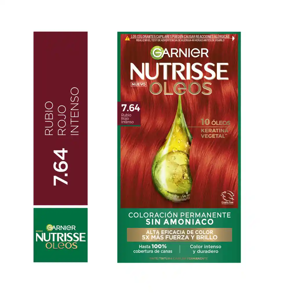 Tintura Nutrisse Oleos de Garnier, es una coloración permanente sin amoniaco con 10 óleos para u...Ver más