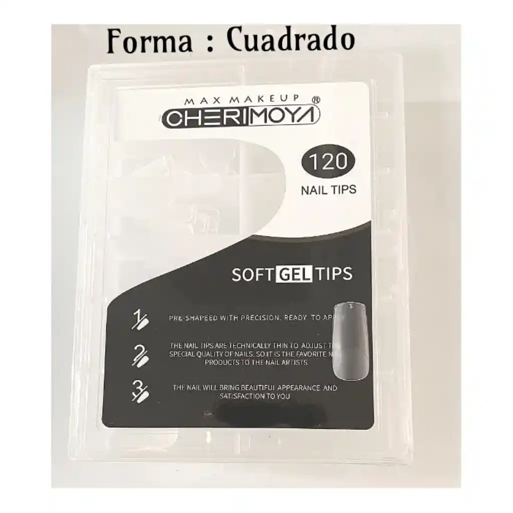 BIENVENIDOS A YASENIA BEAUTY STORE SPA, SEGUIMOS TRABAJANDO PARA USTEDES... * TIPS SOFT GEL (CON POROSIDAD) X 120 PCS PARA REALIZAR LA TECNICA MAS SOLICITADA POR LAS CLIENTES. DE LA MARCA CHERIMOYA * COMPOSICION 90% GEL , 10% ABS ESTE ES UN MATERIAL RESISTENTE A LOS IMPACTO POR SU ALTA DUREZA * MODELO : CUADRADOS RECUERDA QUE TODAS TUS COMPRAS ESTAN PROTEGIDAS POR RAPPI... ¡CON LA MEJOR ATENCION PRESTADA!!!