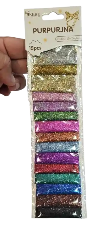 Pack de Purpurinas 15 colores Excelente Calidad 10grs cada bolsa