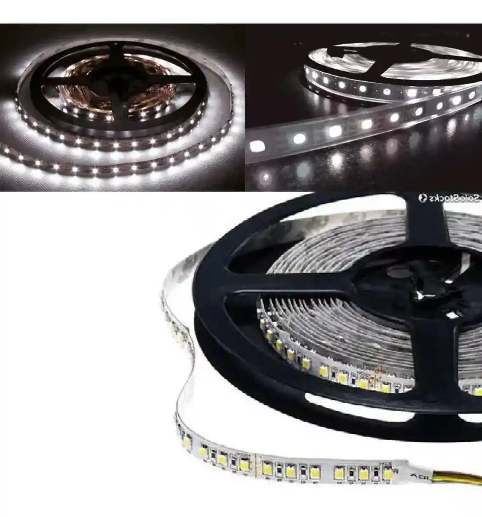 Características Técnicas • Tira Led de luz blanca para decoración. • Voltaje 12V. • 60 Leds/m. • Luz de color blanco. • Cinta adhesiva amarilla 3M. • Poder: 4.8W / m. • 5 mt de largo. • Tienen la capacidad de unirse a otras tiras led. • Ahorro de energía • Con enchufe directo.