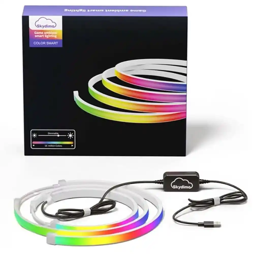Transforma la experiencia de uso de tu monitor con la tira LED RGBIC serie W-H202, diseñada específicamente para proporcionar una iluminación ambiental espectacular y personalizable. Con 16 millones de colores gracias a la tecnología Phantom 5050, esta luz trasera mejora la estética de tu espacio de trabajo o gaming y reduce la fatiga visual al usar tu pantalla en ambientes oscuros. Sincroniza la tira LED con los colores del Monitor, Skydimo Software permite sincronizar mediante conexión USB los colores de la pantalla con los de la Tira LED, también permite modificar colores estáticos, sincronización con música del PC, etc. Nota: -La aplicación Skydimo debe estar abierta en segundo plano para que funcione la tira led, no consume recursos importantes ni afecta rendimiento -Se debe indicar en la aplicación la manera en la que se ha instalado la tira led y el modo que deseas que se muestra en ella. Características principales: Compatibilidad: Diseñada para monitores de 24″ compatible con sistemas operativos Windows. Fácil instalación: Incluye adhesivo de doble cara para un montaje sencillo y seguro. Control inteligente: Ajusta los colores y efectos con el software Skydimo, fácil de usar y disponible en inglés. Alimentación USB: Conecta fácilmente a tu computadora o adaptador de corriente, gracias a su cable de alimentación de 1.5 metros. Versatilidad: Perfecta para uso en oficinas, estaciones de juego o como decoración en el hogar.