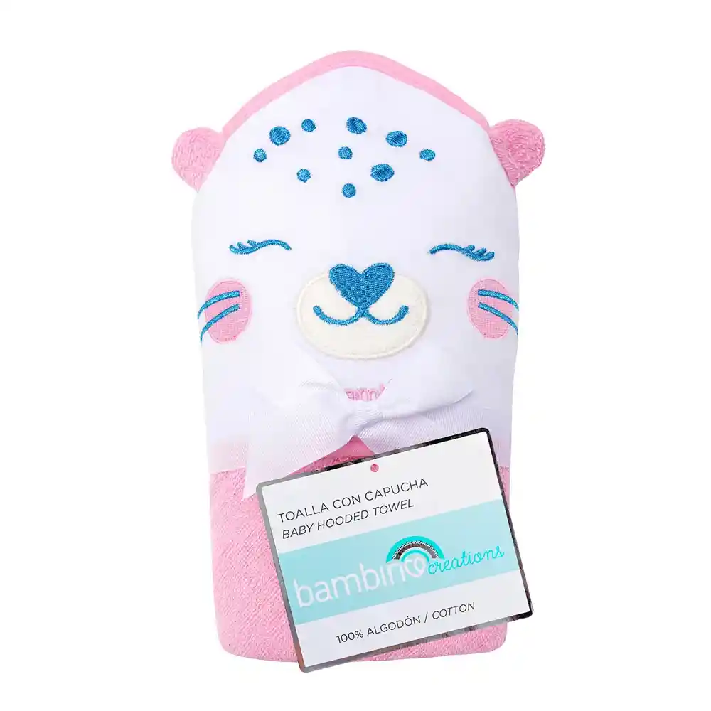 Marca: Bambino Material: Algodón / Paño Medidas: 76 x 76 cm Diseño: Leoparda Género: Niña Contiene: 1 Toalla con Capucha Suaves y absorbente Con capucha para cubrir completo a tu bebé