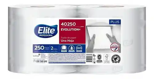 Toalla de papel autocorte, Elite Evolution Doble Hoja, nueva tecnología en toallas tan eficaz que absorberá hasta tus costos ¡Menor costo por uso, mayor capacidad y velocidad de absorción! Las toallas de papel Elite, son prácticas y de excelente calidad; no pueden faltar dentro de tu empresa u hogar. Resistentes y absorbentes, encuéntralas en modelos jumbo, interfoliadas y económicas Precios inlcuyen IVA, emitimos factura o boleta. TAMBIÉN VENDEMOS AL MAYOR - realizar la consulta en los comentarios para optar a precios mayoristas. Hoja: Simple. 2 rollos de 250mt c/u. Autocorte. Extra resistente. Extra absorbente. Excelente calidad.
