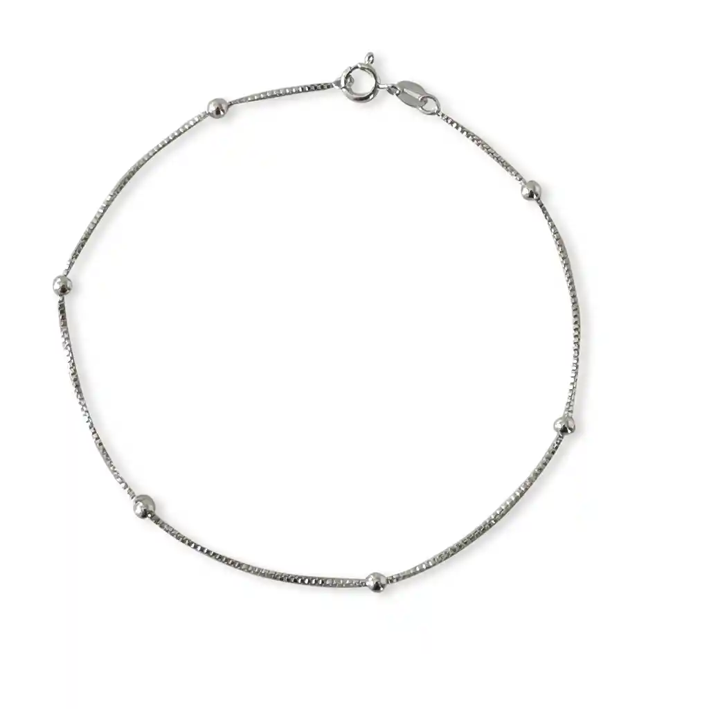 ¡Añade un toque de encanto y elegancia a tus pasos con nuestra Tobillera Veneciana Bolita en Plata Fina 925! Cada bolita de esta delicada tobillera refleja un estilo único y atemporal, mientras que la calidad garantizada de nuestro material asegura su durabilidad y brillo. Disfruta de la belleza y la comodidad con esta tobillera libre de níquel, perfecta para realzar tu look en cualquier ocasión. Medidas: Largo 24cm. Tamaño bolita 2,5mm. Peso 2 gr.