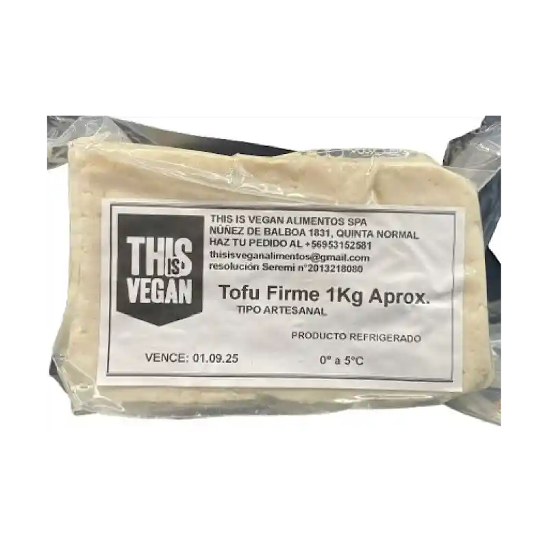El Tofu Artesanal Extra Firme (1 kg) de la marca This is Vegan es un sustituto de carne 100% vegetal, conocido como "queso de soya", que se caracteriza por su alta densidad y resistencia al cocinar.