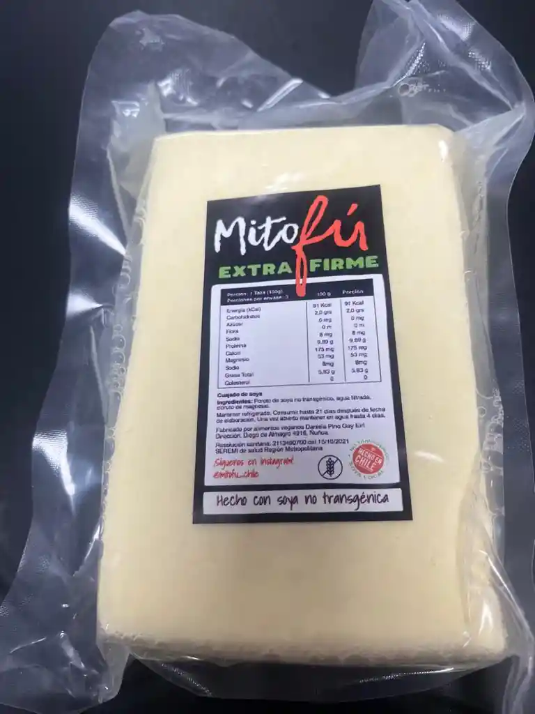 Tofu extra firme, poroto de soya no trangenica, sin gluten, excelente fuente de proteína vegetal. en formato de 400 a 450 gr aprox