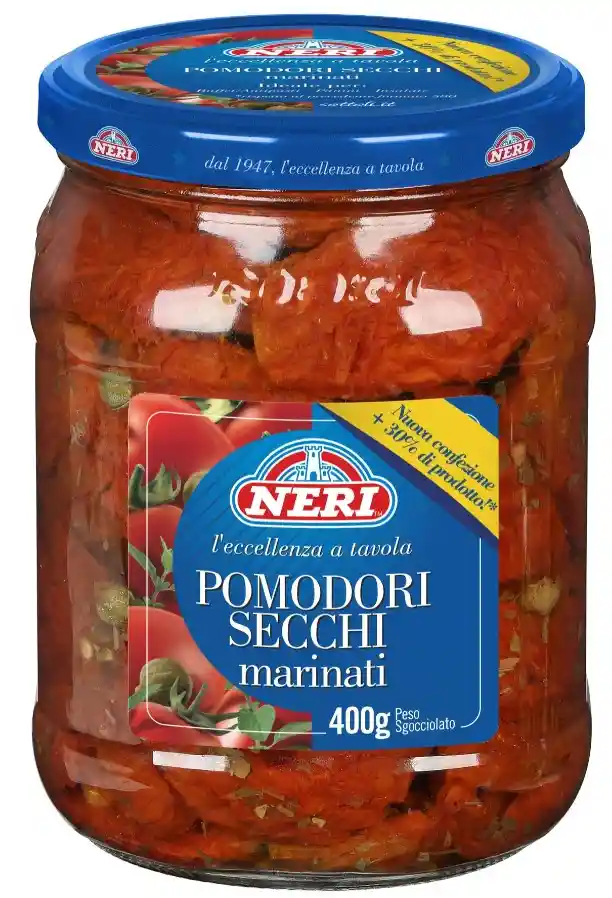 Príncipe indiscutible de la dieta mediterránea, son excelentes para disfrutar crudos y naturales, son también la base de numerosas recetas y conservas típicas de la tradición italiana, existen numerosas preparaciones y sus usos en la cocina. Para producir nuestros tomates secos marinados únicamente utilizamos tomates altamente seleccionados y que hayan alcanzado el nivel perfecto de maduración. Los tomates se dejan secar al sol para conservar todo su sabor y llevar el sabor del verano mediterráneo a tu mesa en cualquier época del año.