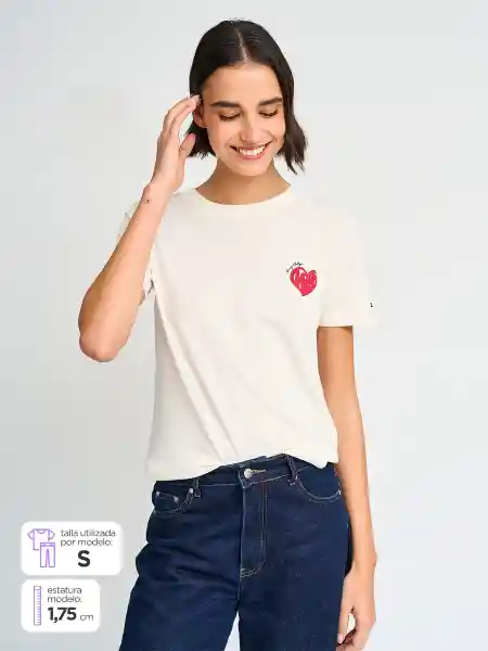 Tommy Hilfiger Polera Corazón Crema M V26 WW45061