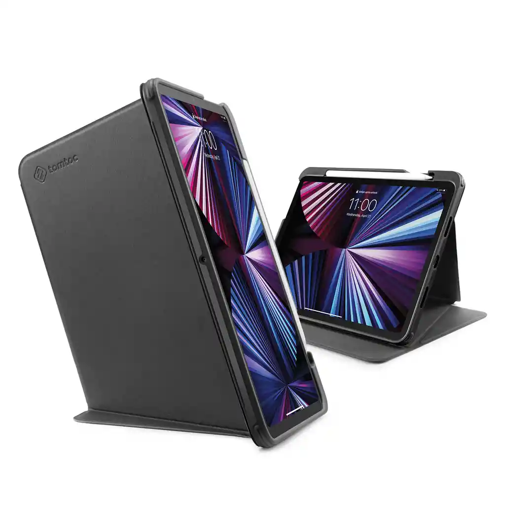 Resistencia Militar Esta funda ha aprobado con éxito el examen STD-810H de resistencia militar. El examen consta de caídas a propósito ,evaluar el soporte y conservación de lo que este dentro de una funda protectora. Gracias a esta certificación, tu iPad estará a salvo. Modos de uso: Esta funda permite colocar tu tablet en tres posiciones diferentes para que seas tu quien decide como observar la pantalla. El primero es el modo vertical que mantiene el dispositivo en una posición de 71 grados lo cual es ideal para videollamadas, lectura y navegación por las diferentes redes sociales. La segunda es el modo paisaje donde puedes colocarla en una posición vertical y que queda fija por una ranura que tiene la cubierta. Perfecto para ver videos, películas o imágenes con mayor claridad. El tercer modo es el Sketch, el cual deja tu iPad recostada para que puedas usarla para dibujar y diseñar. Detalles que si importan Esta funda permite activar la función de encendido y reposo una vez la abres. Además, esta hecha de microfibra lo cual la hace suave al tacto pero resistente ante cualquier eventualidad como golpes o salpicaduras. Lo mejor para tu tablet. Fotos y Apple Pencil La funda tiene espacio para que la cámara de tu tablet pueda tomar las mejores fotos y manteniéndose protegida en todo momento. Sumado a eso, El estuche tiene un espacio para guardar un Apple Pencil junto con la opción de carga inalámbrica. Detalles técnicos: Marca: Tomtoc Compatibilidad: iPad Pro 2021 de 11 pulgadas / Tablets de 11 pulgadas Material: Microfibra Medidas: 25x 19 x2cm Peso: 0.1 kg tablet