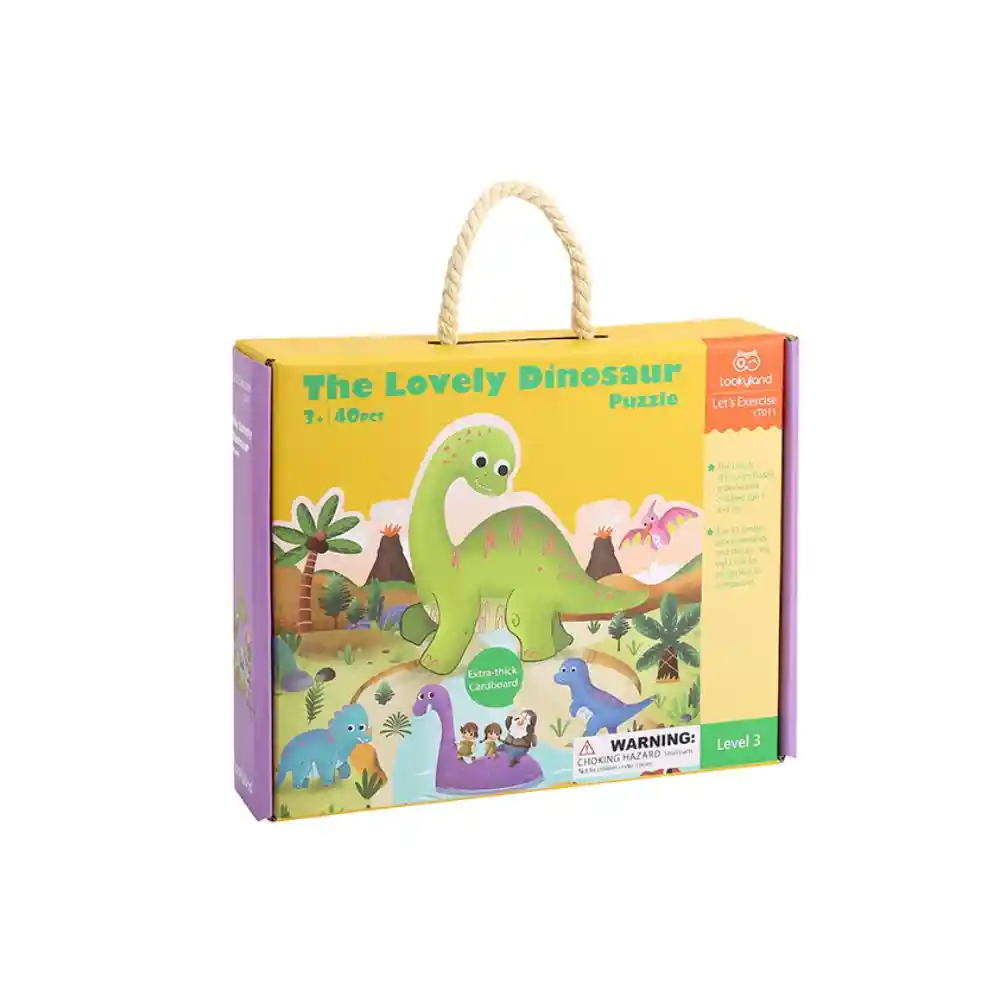 Este es un encantador y colorido rompecabezas de dinosaurios. Contiene 40 piezas grandes fáciles de sujetar para los niños. Las piezas de cartón son extra gruesas para una mayor durabilidad. La superficie fácil de limpiar mantiene el rompecabezas como nuevo durante mucho tiempo. Tamaño Puzzle : 58,3x50 cm Tamaño Caja : 30x24x5,5 cm Edad: +3
