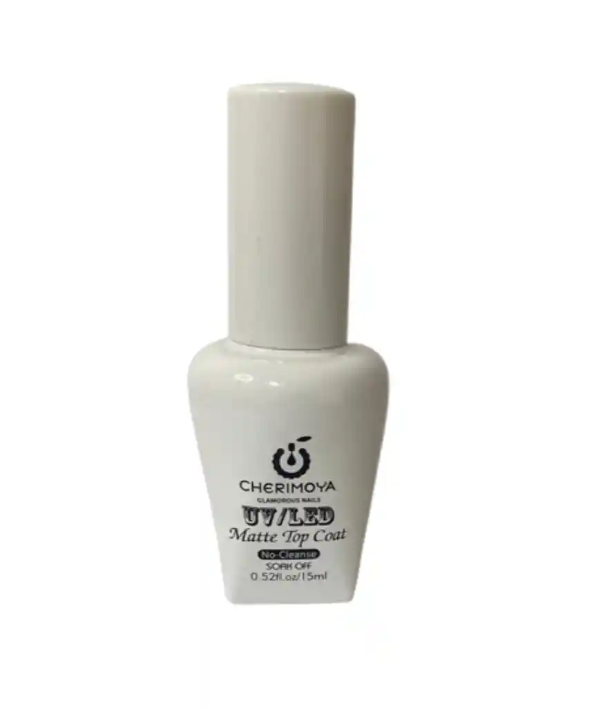 BIENVENIDOS A YASENIA BEAUTY STORE SPA, SEGUIMOS TRABAJANDO PARA USTEDES... * TOP COAT EFECTO MATIFICANTE EN FORMATO 15 ML DE LA MARCA CHERIMOYA * REQUIERE SECADO BAJO LAMPARA UV/LED POR TU CONSISTENCIA ESPESA *COLOR : TRANSPARENTE * CONVIERTE TUS UÑAS DE UN COLOR BRILLANTE EN UN ACABADO MATTE RECUERDA QUE TODAS TUS COMPRAS ESTAN PROTEGIDAS POR RAPPI... ¡CON LA MEJOR ATENCION PPRESTADA!!!