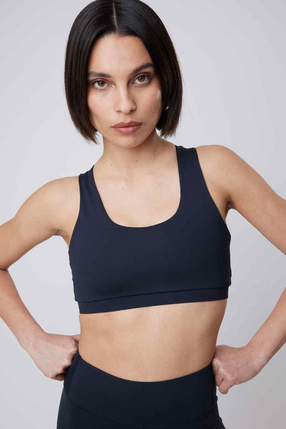Sostén deportivo con tirantes fijos. Soporte alto. Tela gruesa y elástica que entrega mayor contención. Elástico interno en pretina. Forro en el delantero sin copa añadida. Logo JOY ubicado en escote de espalda centrado.