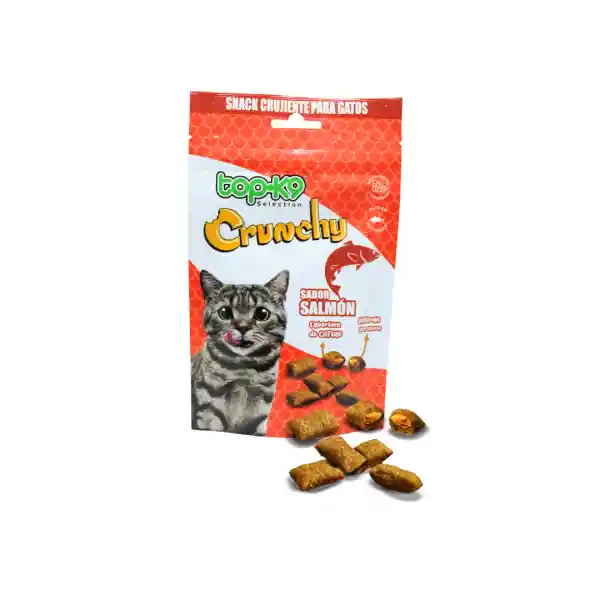 Consiente a tu gato con nuestros irresistibles snacks gourmet Topk9 Snack Crunchy sabor Salmón, elaborados con sabores exquisitos de albacora, salmón y atún. Cada snack está relleno con jugosa carne y cubierto con catnip, para una experiencia sensorial única que tu felino adorará. Estos deliciosos bocadillos no solo son irresistibles, sino que también son una excelente fuente de vitaminas y tienen un alto contenido de proteínas para mantener al gato saludable y activo.