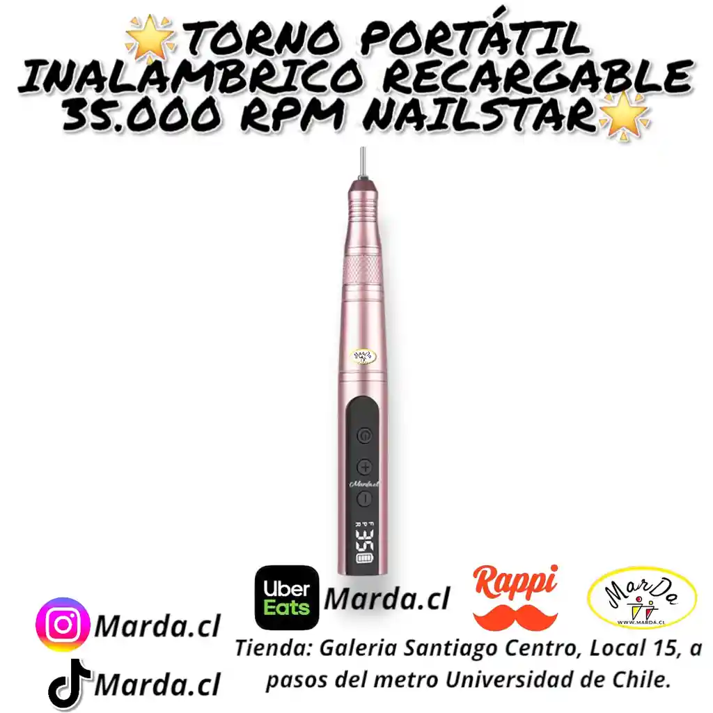 Torno Uñas Profesional Recargable Portátil Dremel 35000 Rpm, Torno profesional de manicura y pedicura en forma de Lápiz, con un alto nivel de revoluciones por minuto. Es portátil y liviano. Fácil de usar, sin estar conectado siempre al cable de carga. Cuenta con pantalla de visualización Tactil. Su batería de Litio, lo hace Potente y de larga duración. Es liviano y portátil. Apto para trabajar uñas de manos y pies. También para gel y acrílico. Posee Velocidad ajustable de 0 a 35,000 rpm. Modo de marcha atrás y avance. Incluye un cable cargador tipo C y equipado con 6 cabezales de pulido estándar, opcionales para satisfacer sus diferentes necesidades de cuidado. Adecuado para manicura y pedicura de uñas en casa o salón de belleza.