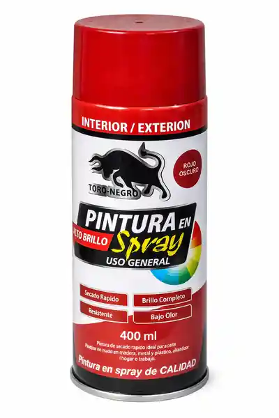 Spray de Alto Brillo en Color Rojo de la Marca Toro Negro. Ideal Para Proyectos de Construcción y Renovación en Interiores y Exteriores. Resistente a la Intemperie y de Secado Rápido Para un Acabado Duradero y Profesional.