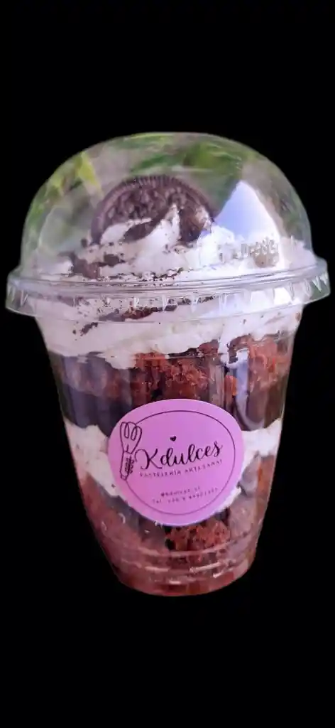 Biscocho de Chocolate, Relleno Crema de Oreo y Chocolate, Topping Oreo, Vaso 12 Onza