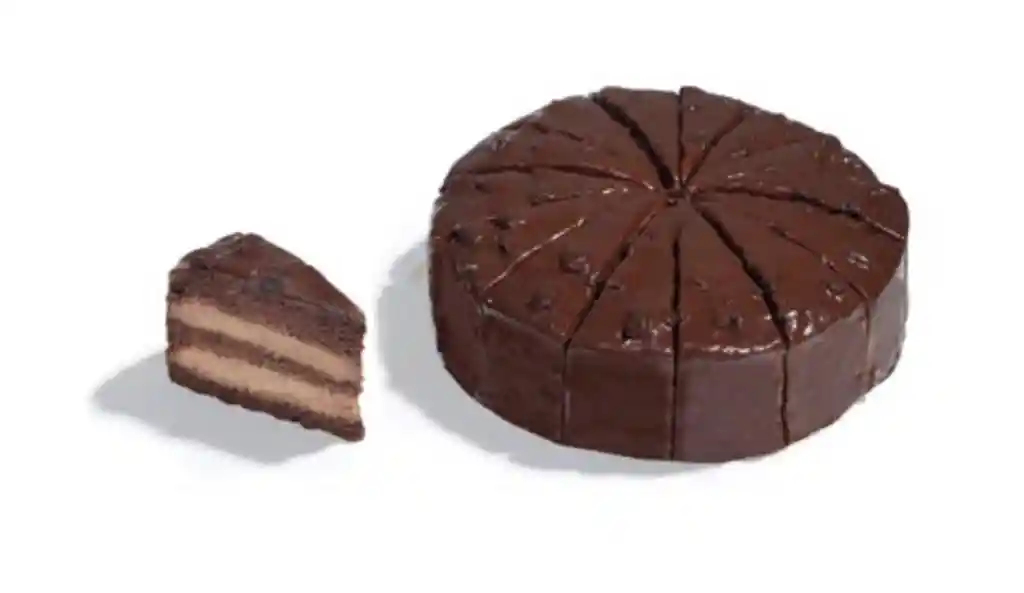 Tarta de chocolate con tres capaz de bizcocho de chocolate alternadas con mousse de chocolate negro y recubierta con ganache