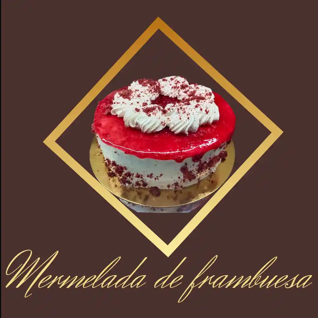 Bizcocho de vainilla, relleno de mermelada de frambuesa y chantilly.