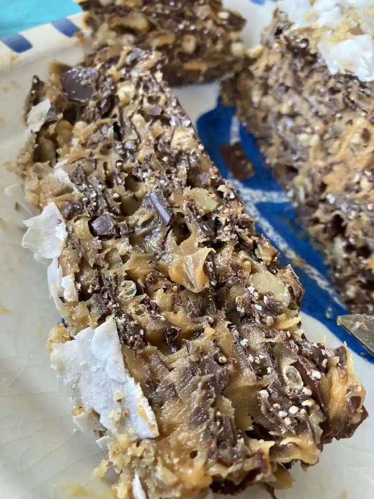 Torta de Laminas de chocolate crispy con quinoa, amaranto y sarraceno y relleno de Nuez manjar VEGANA y SIN GLUTEN sellada al vacío y congelada