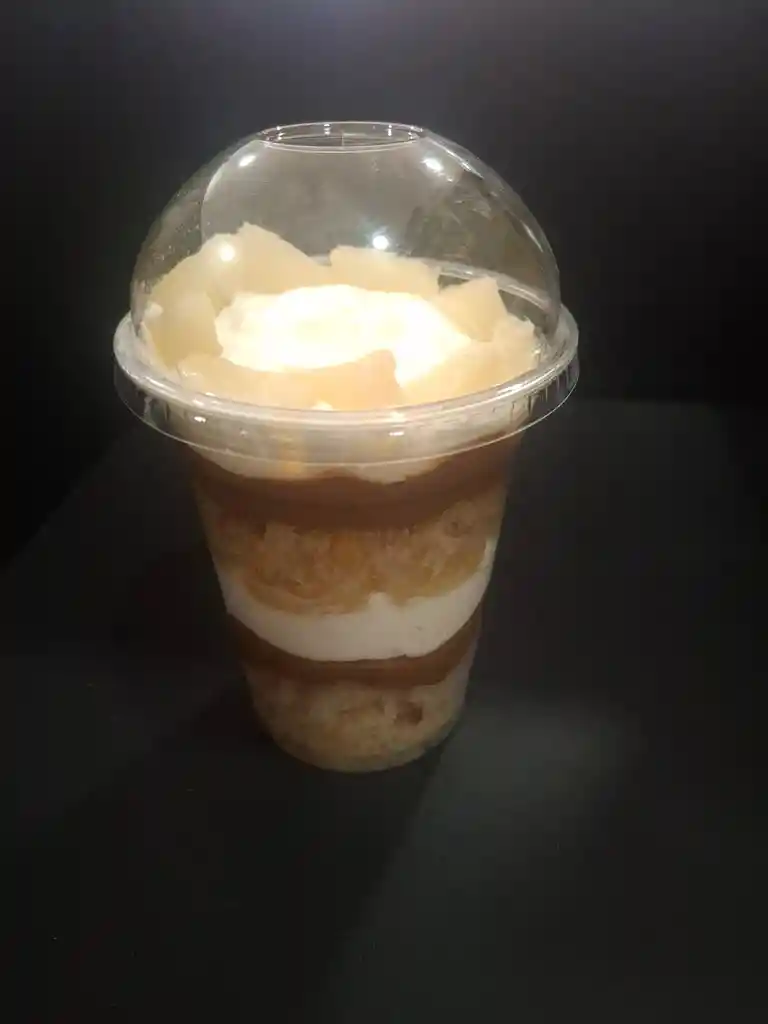 TORTA EN VASO SABOR PIÑA, MANJAR, CHANTILLI