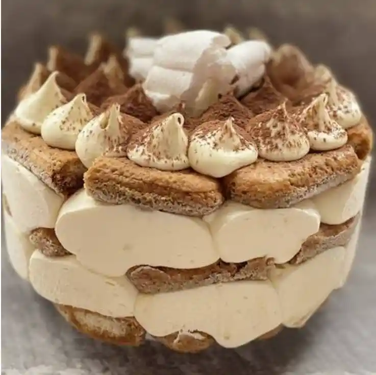 Galletas de chamapaña+ de café + crema philadelfia + cacao en polvo + Merenguitos.