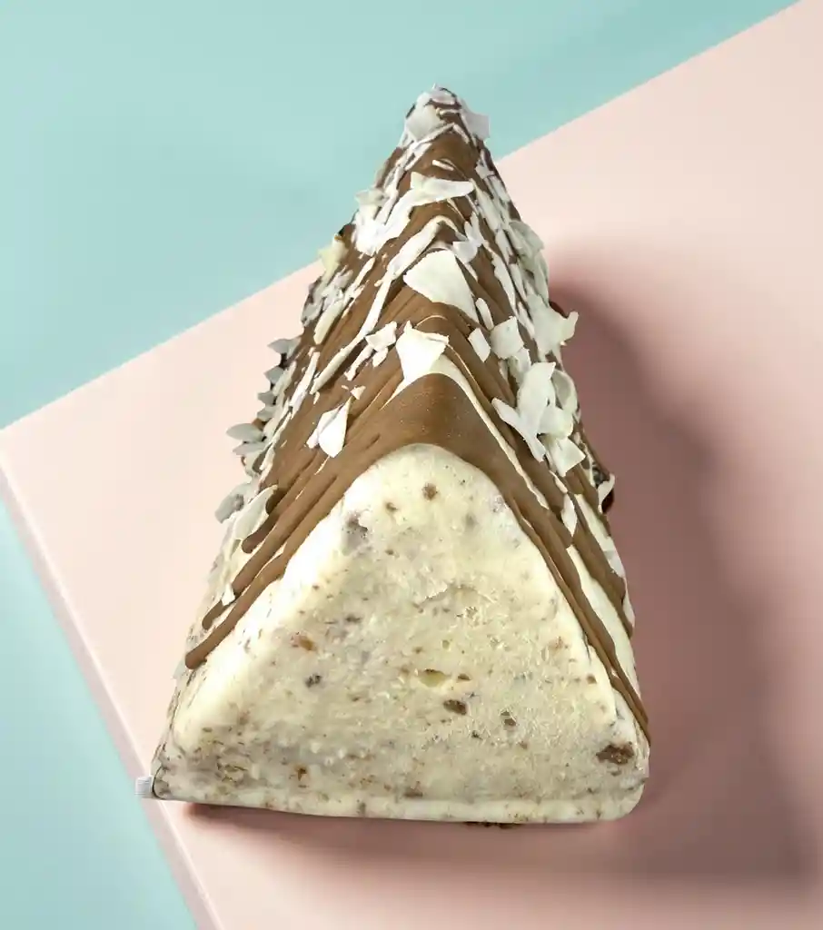 Triangulo helado de helado de coco, almendras y chocolate 7 porciones aprox medidas 25x10cm