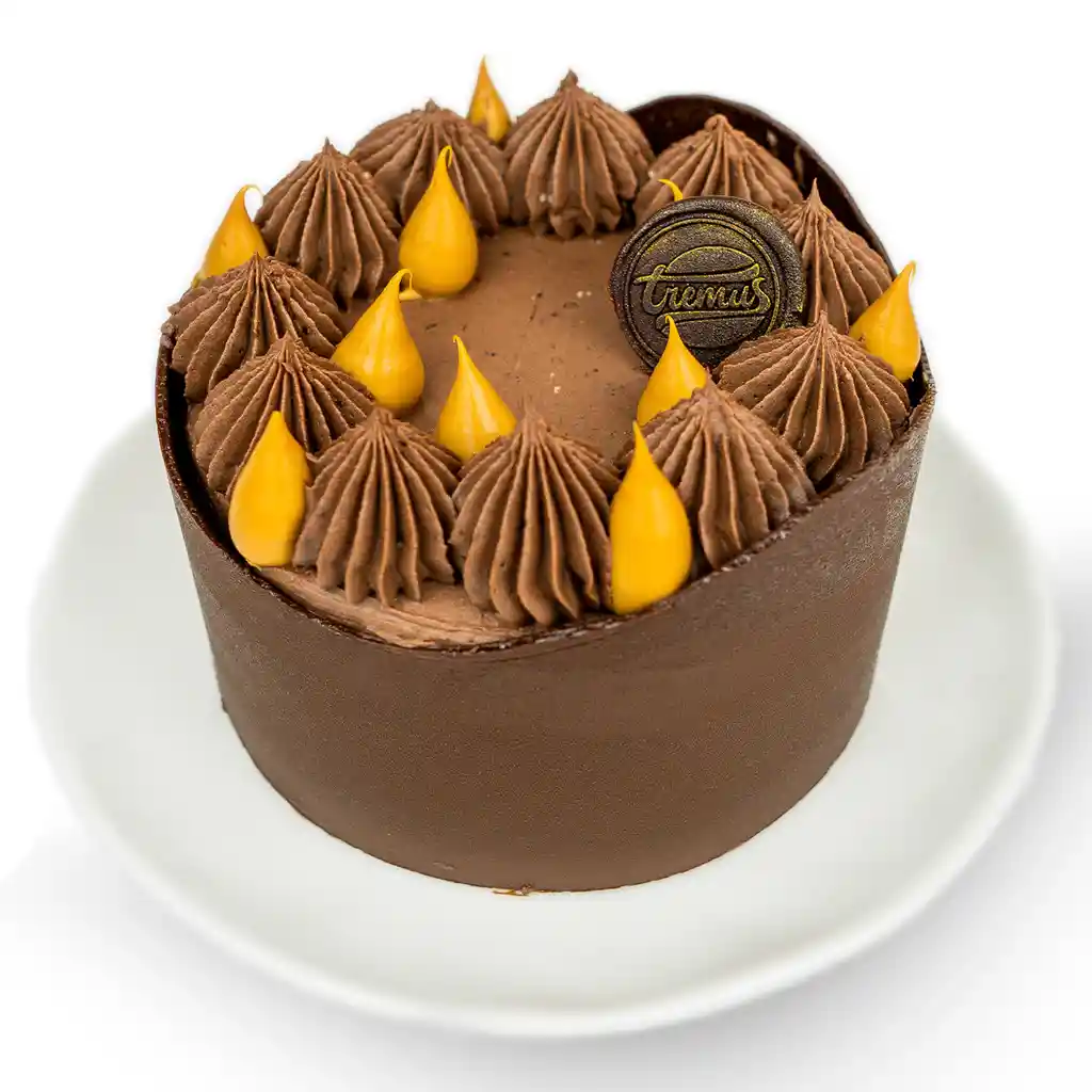 Torta de Chocolate Manjar Keto. Delicioso postre keto con una base de bizcocho de cacao hecho con harina de almendra y harina de coco, endulzado con alulosa 100% natural. Está rellena de una suave mousse de chocolate 85% cacao y una cremosa crema manjar. Su cobertura de frosting de queso crema y mantequilla, con un toque de cacao, se complementa con una elegante decoración de tuille crujiente. Perfecta para quienes siguen una dieta keto y aman el chocolate.