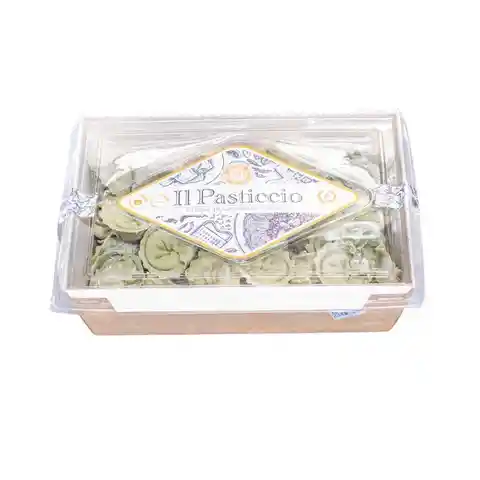 "Tortellini Hummus (Apto para Veganos) Pasta de rellena con masa de espinacas sin huevos y relleno de Hummus. 500 grs. Para 3 a 4 Porciones Mantener congelados "
