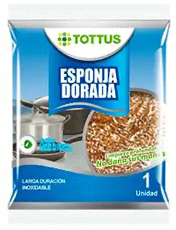 Esponja inoxidable de larga duración dorada. Ideal para lavar los platos, utensilios, ollas y el fregadero, esta elaborada con la mejor materia prima ideal para limpiar cualquier suciedad de tus utensilios de cocina. packing: Bolsa