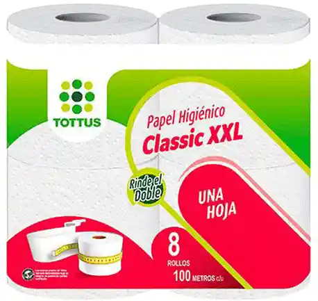 Papel Higienico Classic XXL 100Mts Tottus 8Un
