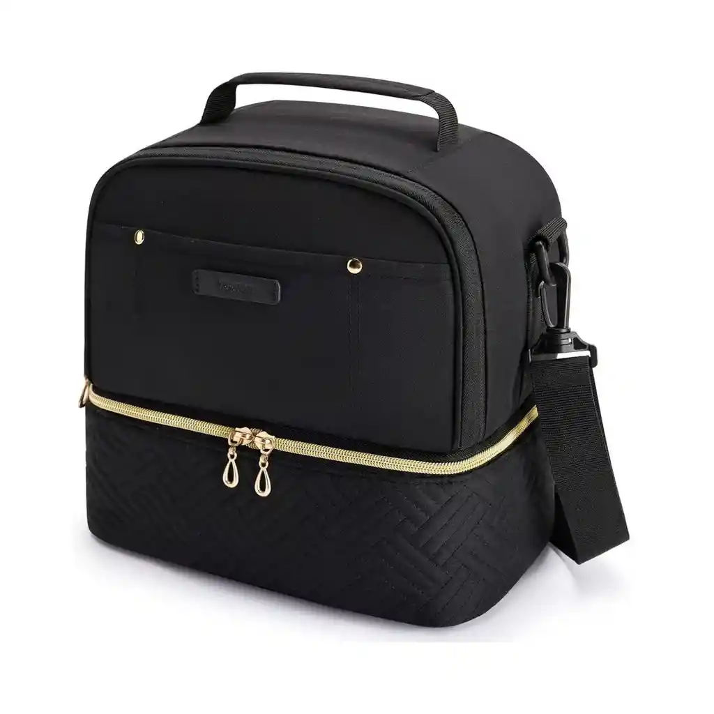 "Tourit Lonchera con Aislamiento Térmico Cubierta Doble 10,6L • Doble Cubierta • Alimentos fríos y calientes separados • Diseño unisex ligero • Capacidad de 10.6 L • Hasta 9 latas Lonchera de Doble Cubierta Dos secciones aisladas permiten empacar alimentos calientes separados de los alimentos fríos, evitan que los alimentos se apilen y aprieten. La sección superior es perfecta para artículos sin fugas como frutas, aperitivos; la sección inferior ""fría"" está aislada con forro de PEVA suave, perfecto para enfriar bebidas, almuerzo, etc Aislamiento a Largo Plazo El forro de la lonchera está hecho de material PEVA, interior acolchado con espuma EPE de 5 mm para mantener la comida fría/caliente/fresca hasta 12 horas. El exterior de la lonchera está fabricado con material repelente al agua para mayor durabilidad y fácil de limpiar. Gran Capacidad Capacidad total de 10.6 L, lo suficientemente espaciosa como para almacenar 9 latas (355 ml) o tu almuerzo como sándwich, ensalada, bebidas y frutas, etc., ideal para empacar toda tu comida y aperitivos durante todo el día. Diseño de Separador Extraíble y Múltiples Bolsillos Cuenta con 1 separador extraíble del compartimento inferior que permite fijar la posición de la comida y evitar que los artículos se muevan. También 2 secciones principales de almacenamiento; 1 bolsillo frontal para cosas pequeñas; 1 bolsillo interior de malla para guardar utensilios o paquetes de hielo. Versatilidad Portátil Equipado con una correa de hombro ajustable y desmontable con acolchado y asa de agarre fuerte para darte dos opciones para llevar cómodamente la bolsa. La bolsa de almuerzo pesa solo 454 g, que es una bolsa de almuerzo perfecta para mujeres y hombres para llevar el almuerzo a la oficina, picnic, parque y al aire libre. Detalles técnicos: Marca: Tourit Modelo: TR2105014AN Medidas: 26 x 16 x 25.4 cm Material: material PEVA Peso: 454 g"