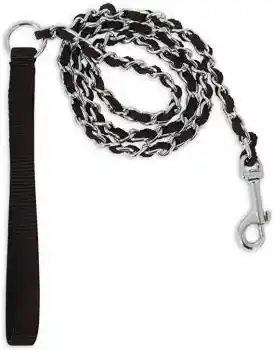 TRAILLA METALICA CON CINTA NEGRA Y MANGO DE NYLON, ESPECIAL PARA PERROS GRANDES MUY TIRADORES 1,2 METROS