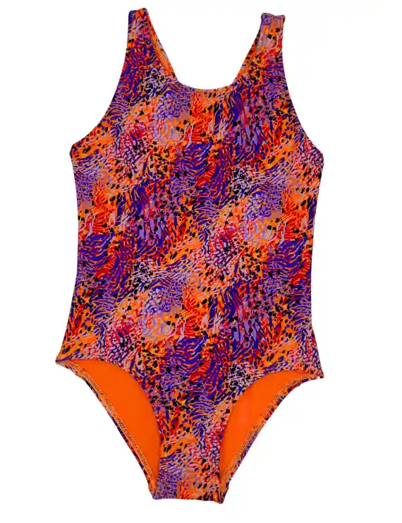 Traje De Baño Básico De Niña Estampado Naranja 2