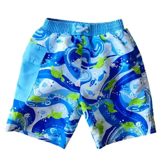 Traje de Baño Con Pañal Short Tortuga Celeste. Características: Traje de baño con pañal incorporado Reutilizable. Una sola Pieza. No necesita el uso de ningún otro tipo de pañal de agua. No se infla, no son pesados y el niño esta mucho mas cómodo. Tienen Filtro UV 50. Se pueden lavar en la Maquina, pero no usar secadora. A prueba de todo tipo de accidentes (Pipi y Caca).