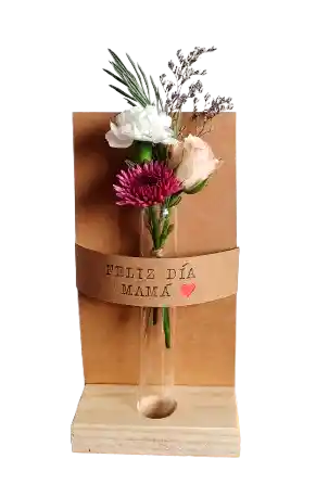 Tarjeta floral con mensaje día de la madre. Tamaño del arreglo: 22x10x4cm. Incluye: mini ramo de flores frescas, tubo para agregar agua a tus flores y alzador. La imagen es referencial, las flores y los colores pueden variar dependiendo de la disponibilidad del día. (No olvides agregar un poco de agua al tubo para que tus flores duren varios días)