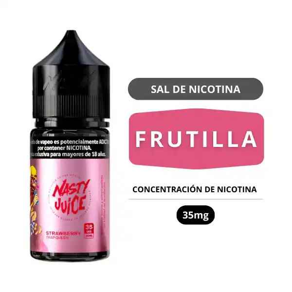 Disfruta de una explosión suave y aterciopelada. Un vapeo que captura la esencia de las frutillas de la estación, ofreciendo un sabor dulce, fresco y delicado en cada calada. Perfecto para quienes buscan un perfil frutal natural y sedoso que se mantenga constante y placentero. Características - Tamaño: 30ml. - Composición: 50/50. - Tipo de Nicotina: Sal de nicotina. - Concentración de Nicotina: 35mg. *Su alta dosis de nicotina es perfecta para equipos POD y vapeo boca pulmón. *Elige resistencias de 0,8ohm – 1,0ohm – 1,2ohm para una mejor experiencia. *Las sales de nicotina nunca deben ser usadas en tanques sub-ohm, RTAs o Rdas.