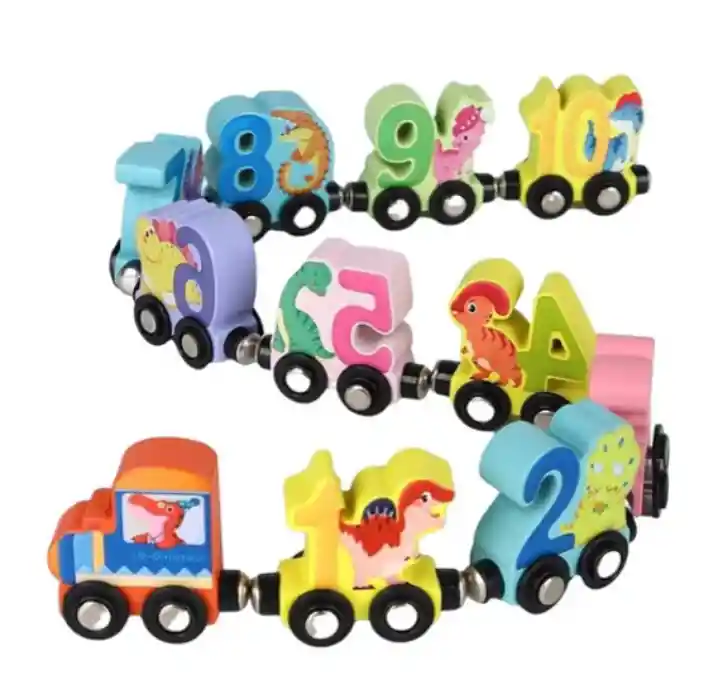 Este tren de animales juguete didáctico en madera es perfecto para estimular el aprendizaje y la diversión de los más pequeños. Con su diseño colorido y atractivo, este juguete captará la atención de los niños y los mantendrá entretenidos durante horas. El tren de arrastre animales está hecho de madera de alta calidad, lo que garantiza su durabilidad y resistencia. Además, sus piezas son seguras y no tóxicas, lo que brinda tranquilidad a los padres. Este juguete didáctico ayuda a desarrollar habilidades motoras finas, coordinación mano-ojo y reconocimiento de formas y colores. Los niños podrán jugar y aprender al mismo tiempo, lo que lo convierte en una excelente opción para su desarrollo temprano. El tren de animales incluye diferentes figuras de animales, como dinosaurios , que se pueden conectar magneticos y encajar en los vagones del tren. Esto fomenta la creatividad y la imaginación de los niños, así como el reconocimiento de diferente dinosaurios .