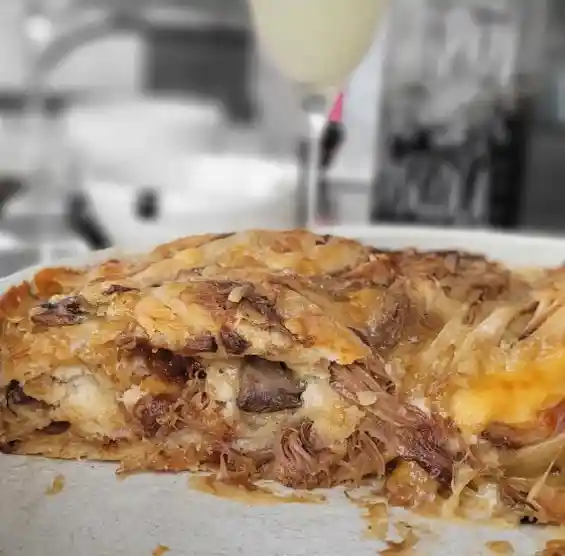 Déjate sorprender por nuestra deliciosa trenza de masa leudada, elaborada con harina de trigo de la mejor calidad, suave y esponjosa: Rellena con un pesto artesanal y tomates deshidratados, que aportan un sabor mediterráneo inigualable. Queso gouda fundido, perfecto para realzar cada bocado. Carne mechada casera, cocinada lentamente con especias seleccionadas, que garantiza una textura y sabor irresistibles.