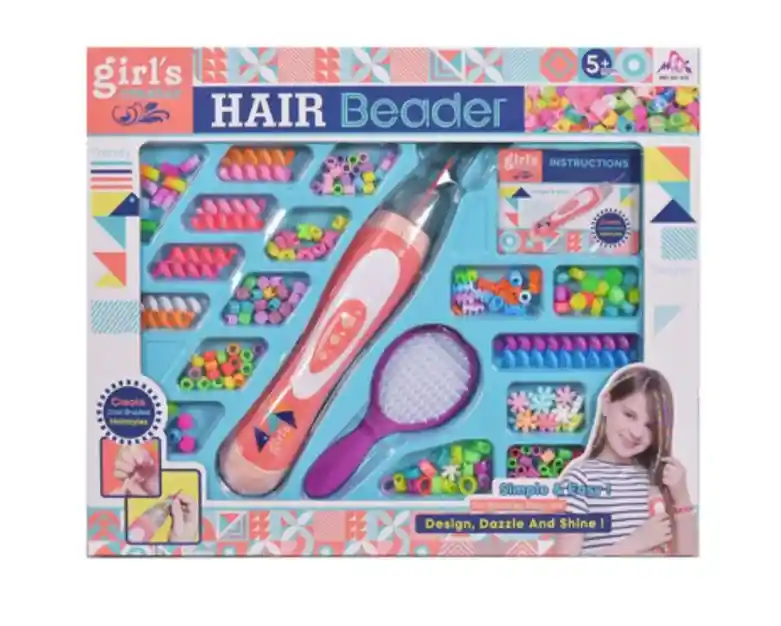Set de cabello para las pequeñas de casa con herramientas para crear tus propios peinados. Puedes usar cuerdas y cuentas de diferentes colores para crear un look, y grandiosos diseños con este mini estudio que podrás llevar a todas partes, ideal para pasar tiempo de diversión colocando y diseñando creaciones únicas con un gran estilo.