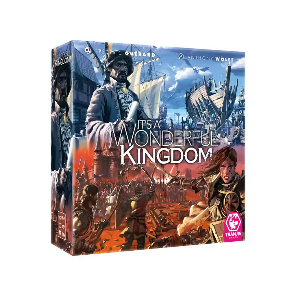 ¡Hazte con el reino y recupera el trono que te pertenece legítimamente! Domina el sistema de ofrendas y trampas para engañar a tu oponente y que elija las cartas como más te convenga a ti. ¡Desarrolla tu ducado mejor que tu rival y gobierna este maravilloso reino! Basado en la mecánica principal de It’s a Wonderful World, pero con mecánicas y módulos adicionales. It’s a Wonderful Kingdom es un juego con mecánica principal de draft en el que, a lo largo de cuatro rondas, las personas se repartirán cartas mediante un sistema de ofrendas. Consta de tres fases: Selección, Planificación y Producción. Cada persona deberá jugar de manera estratégica para conseguir aquellos recursos que le permitan construir un mejor ducado y deshacerse de las cartas negativas que van a perjudicar su puntuación al final de la partida. El faroleo toma relevancia en la fase de selección. Consigue los recursos necesarios para construir un mejor ducado. Incluye tres módulos distintos para añadir rejugabilidad a las partidas. It’s a Wonderful Kingdom es el juego ideal para jugar dos personas o en modo solitario. ¡A por el reino!
