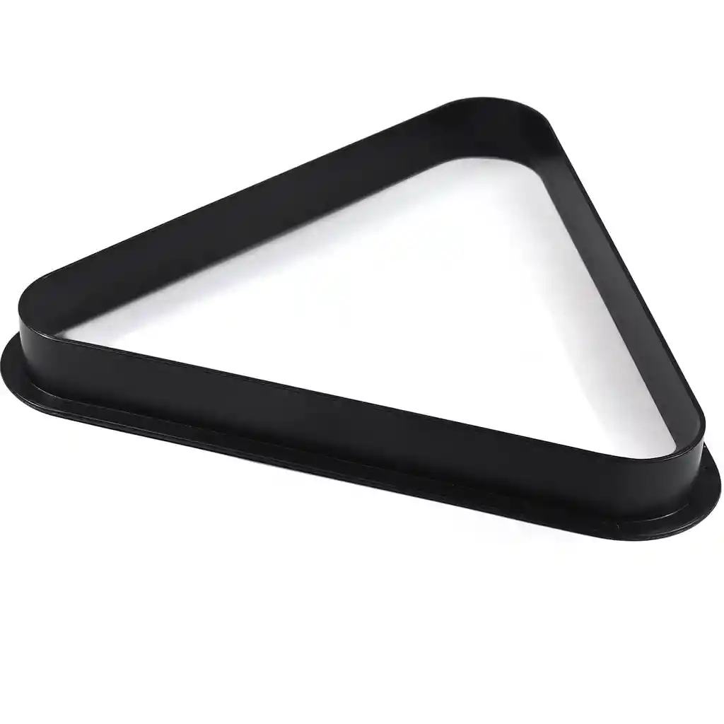 TRIANGULO POOL PLASTICO FYQ007 Triangulo para pool Color negro Triángulo de PVC Para 15 bolas Ancho interior 29,7 cms Profundo interior 26,5 cms Alto 3 cms Peso 115 grs