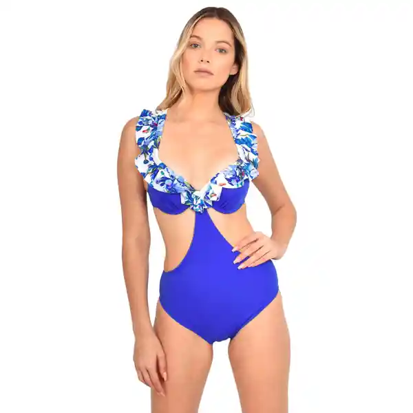 Trikini Con Vuelos Estampado Azul Talla S Samia