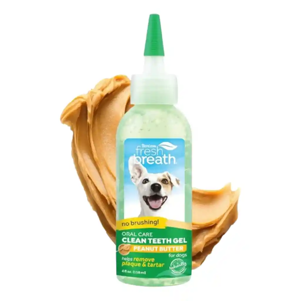 El gel Fresh Breath No Brushing Peanut Butter Flavor Clean Teeth Dental & Oral Care Gel de TropiClean® tiene una mezcla única de poderosos ingredientes de origen natural que ayuda a remover la placa y el sarro de los dientes de tu perro, para que tu perro pueda darte besos con aliento fresco. No requiere cepillado. Para potenciar su efecto, puedes usar los otros productos de la línea Fresh Breath de TropiClean®, como el aditivo para el agua, cepillo de dientes y el gel para cepillado. Formato: 59ml Sabor: mantequilla de maní Modo de uso: Corta la punta del aplicador para poner dos gotas de gel en cada lado de la boca de tu perro, una vez al día. Después de la aplicación, tu perro comenzará a lamerse los labios, permitiendo que el gel llegue a toda la superficie de sus dientes y encías. Para un mejor efecto, no le des comida ni agua durante 30 minutos antes y después de la aplicación.