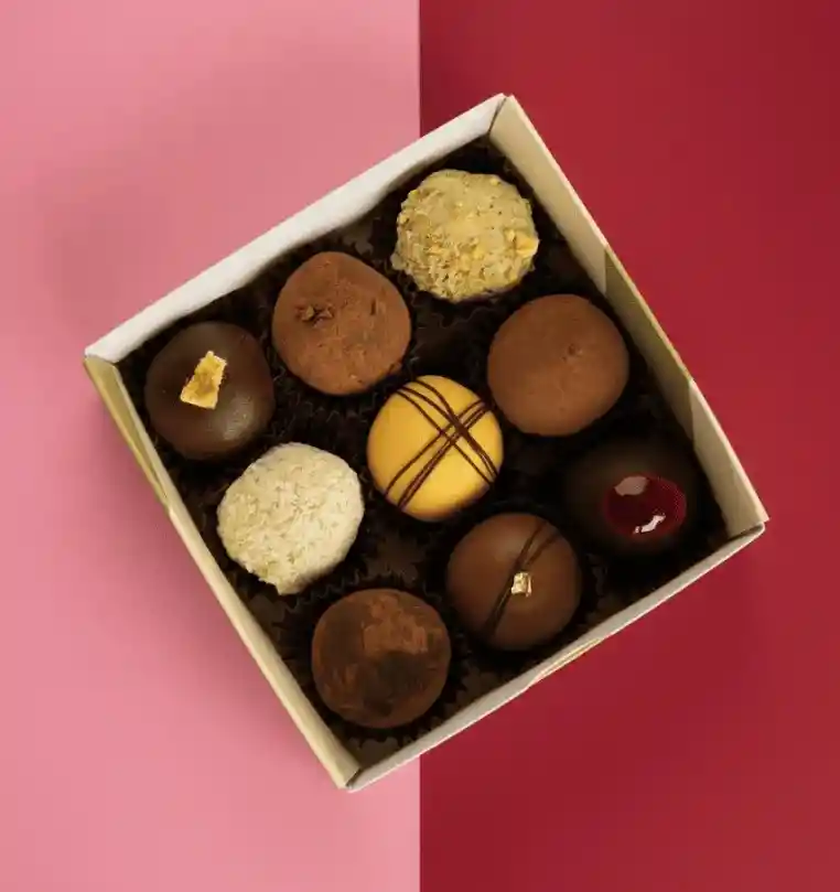 🍫 Trufas Mix – Selección San Valentín Nueve trufas artesanales, pensadas para recorrer aromas, texturas y contrastes. Esta Caja de Trufas Mix reúne una selección de sabores que van desde notas especiadas y cítricas hasta perfiles intensos y frutales. Cada trufa combina una capa exterior crocante con un interior suave y cremoso, creando una experiencia equilibrada y envolvente en cada bocado. 🌿 Sabores incluidos: Cardamomo Naranja Frambuesa Cacao Pistacho Mango / Maracuyá Café Caja incluye 9 trufas (180grs aprox).