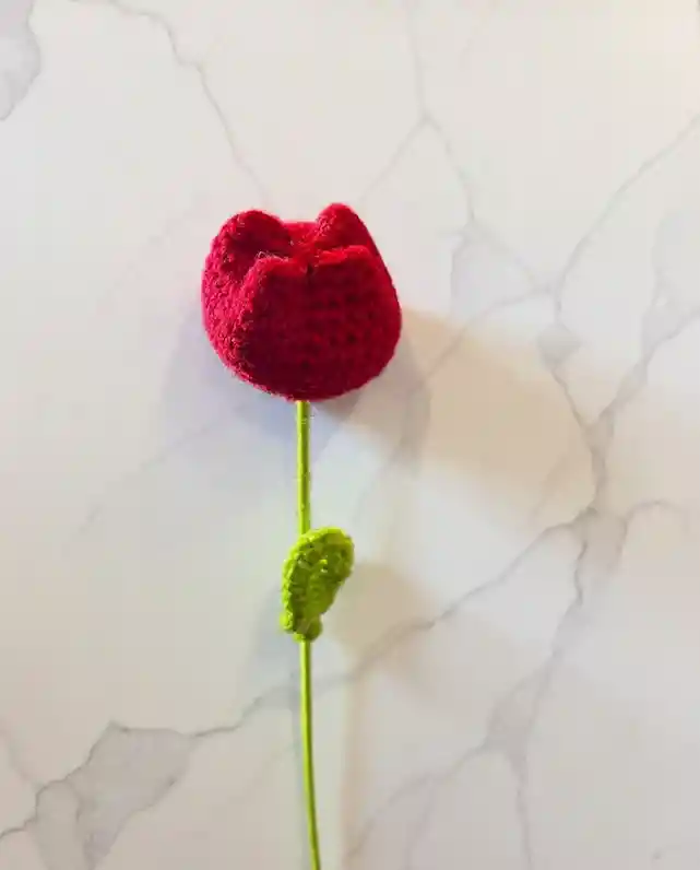 Tulipan de lana rojo tejido a mano 40-30 cms